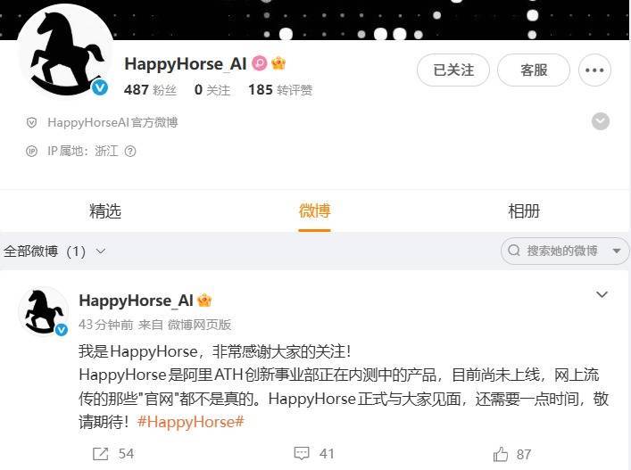 当天,阿里巴巴ATH方面向《21辟谣》记者表示,HappyHorse是阿里巴巴ATH旗下创新事业部研发的模型,目前正处于内测中,也会于近期开放API。ATH创新事业部已启动一个AI时代的全新交互方式探索计划,HappyHorse是这个探索方向的一部分,更多的产品会陆续推出。
