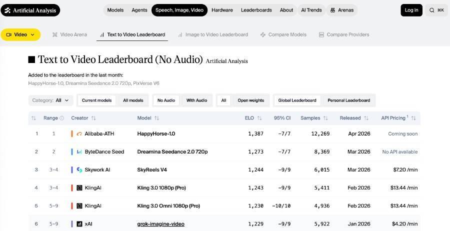 此前,该视频模型HappyHorse-1.0匿名(未标注厂商)登顶视频榜单多项测评。据权威AI评测平台Artificial Analysis AI Video Arena排行榜,HappyHorse-1.0以更高的Elo分数压过字节跳动旗下Seedance 2.0、快手旗下可灵AI、Google Veo 3 Fast等视频模型,一举成为榜首。